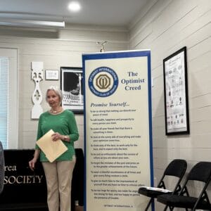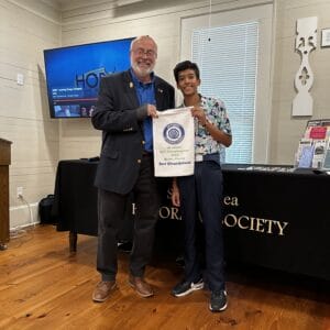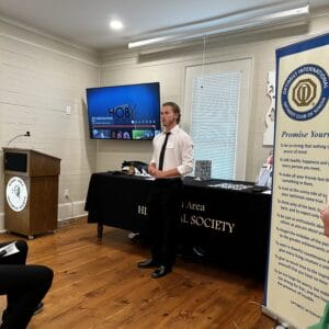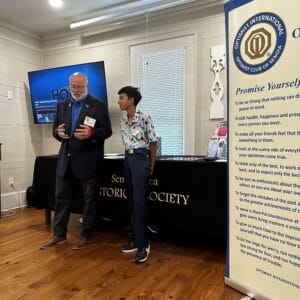 HOBY ambassadors Cole Hayes and Aimua Korli, both from Northgate High, talked about their experiences at the June Leadership Seminar and how much they have grown in leadership skills and as community volunteers. Dev Khandelwal talked about his love of golf, how much he practices, and his week spent at the OI Junior Golf Tournament in Miami, Florida. Thank you, Martha and Dennis Sanford, for the refreshments, for years of support for HOBY, and for the donation! Thank you, Charlesanne Miskell, for designing gifts for our guest speakers.